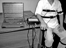 Легко сказать — «расслабьтесь», когда тебя опутывают ремнями, проводами и датчиками. На электрокардиограмму чуть-чуть похоже. Только на Лубянке её обычно не делают…. За спиной — стол, на нем — обычный на вид ноутбук, к которому тянутся провода от закрепленных на мне «щупалец» «детектора лжи» — полиграфа. Неуютно, особенно от ощутимо стягивающих грудь и живот ремней с датчиками. Дыхание инстинктивно становится прерывистым, в ушах отзывается стук собственного сердца.